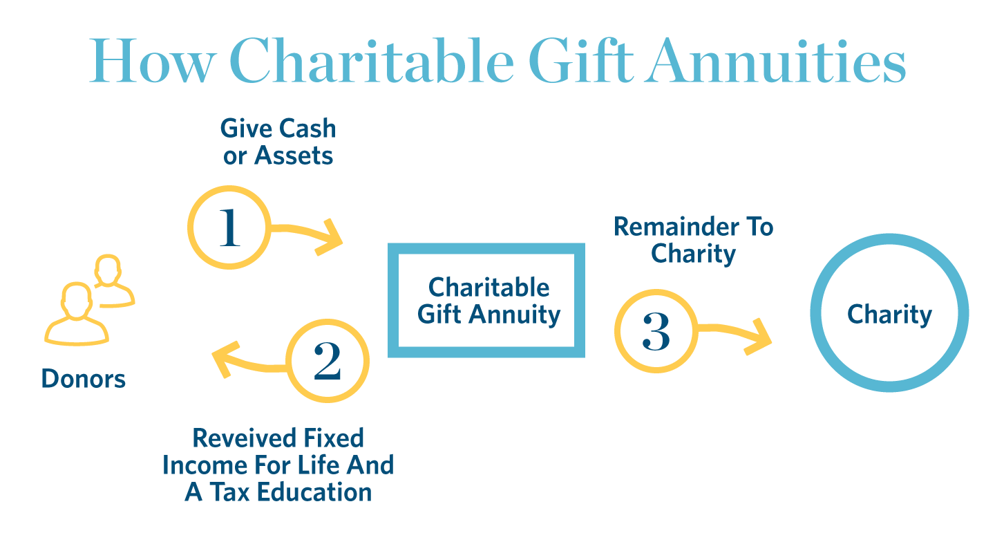 A Charitable Gift Annuity (CGA) may be a good fit for you. CGAs are a simple arrangement that involves a charitable gift and ongoing income. You make a gift—part of which is tax deductible—and receive fixed payments each year for the rest of your life. At the end of your life, the remainder of your charitable gift goes to support our work.