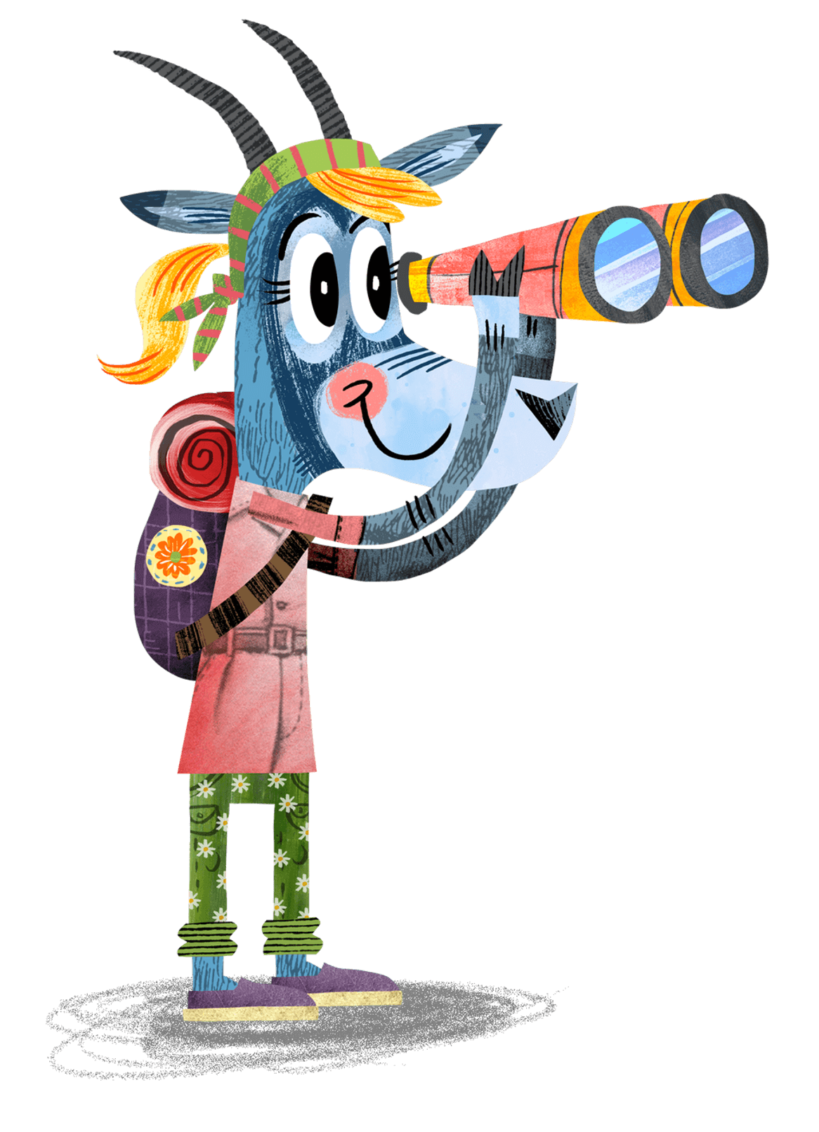 Arty has a paintbrush in one hand and paper in the other. She is always looking for inspiration. Her looking hunts give Arty the opportunity to learn by looking and showing what she sees.